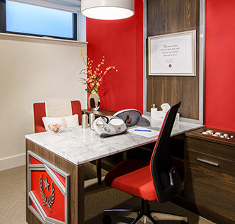 Rising six stories above Reception is the building’s stunning grand atrium. The design was inspired by the sequoia, including the circular stairwell lined with an intricate leaf pattern.