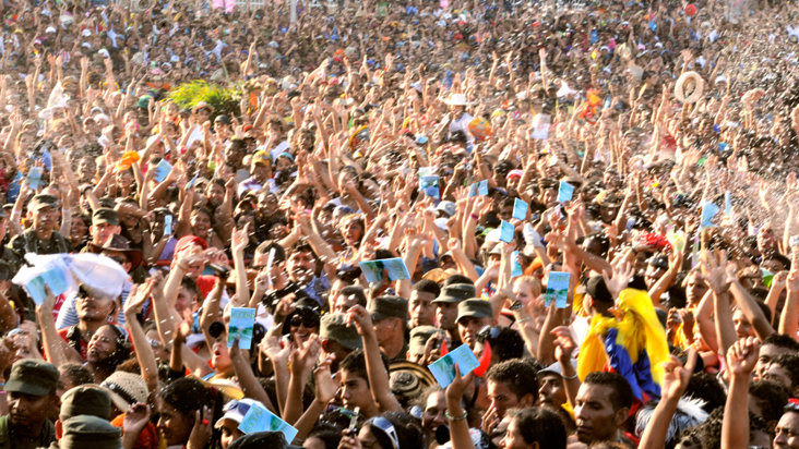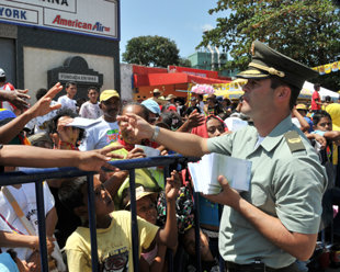 Seeking a solution, the Colombian National Police launched a Way to Happiness program, directing a massive handout when street protests threatened to erupt into riots. Officials also arranged to have public service announcements depicting The Way to Happiness precepts aired on Bogotá television.
